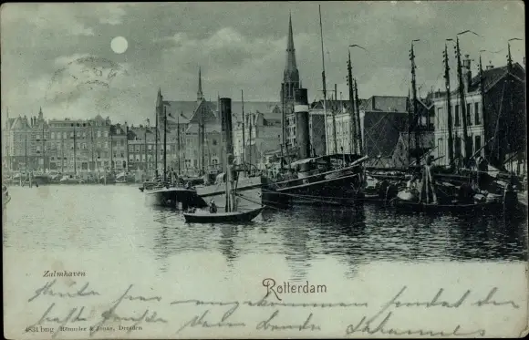 Mondschein Ak Rotterdam Südholland Niederlande, Zulmhaven, Nacht