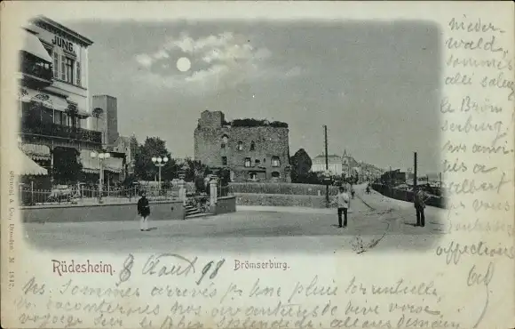 Mondschein Ak Rüdesheim am Rhein, Brömserburg