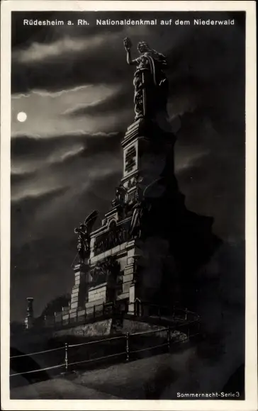 Mondschein Ak Rüdesheim am Rhein, Niederwald Nationaldenkmal