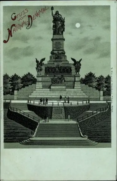 Mondschein Ak Rüdesheim am Rhein in Hessen, Niederwalddenkmal