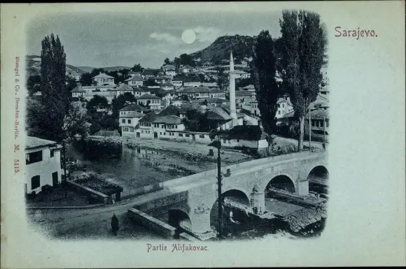 Mondschein Ak Sarajevo Bosnien Herzegowina, Partie Alifakovac