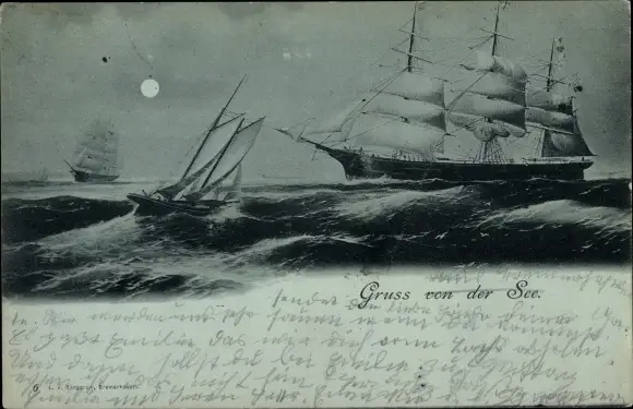 Ansichtskarte, Postkarte, Hafen, Schiffe, Boote, Dampfer, Boot