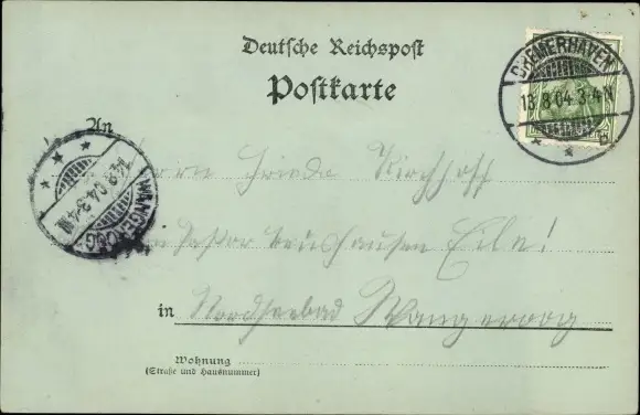 Zustand, siehe Scan, gelaufen, 1904 - ca 14 cm X 9 cm
