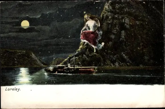 Mondschein Ak St. Goarshausen am Rhein, Loreley