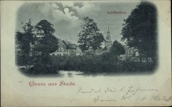 Mondschein Ak Stade in Niedersachsen, Schiffertor