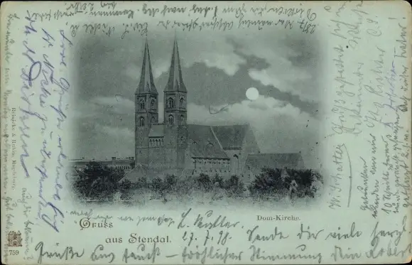 Mondschein Ak Stendal in der Altmark, Domkirche