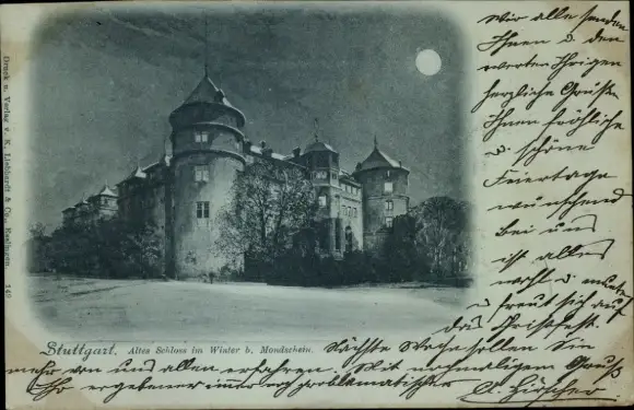 Mondschein Ak Stuttgart in Württemberg, Altes Schloss, Winter