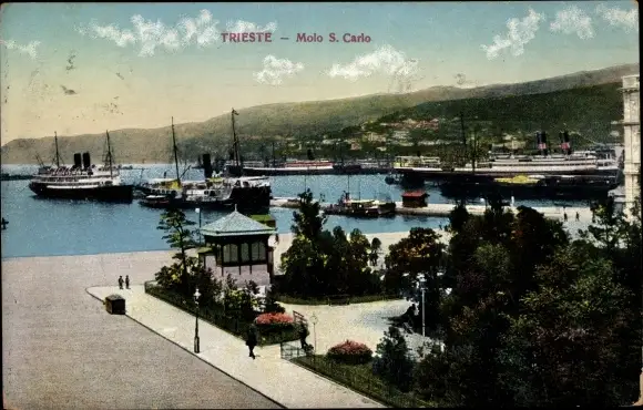 Mondschein Ak Triest Trieste Friuli Venezia Giulia, Molo S. Carlo, Hafen, kuk Passagierdampfer