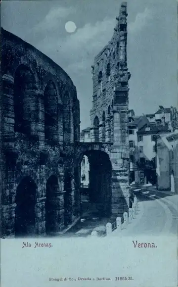 Mondschein Ak Verona Veneto, Ala Arenas, Partie am Amphitheater