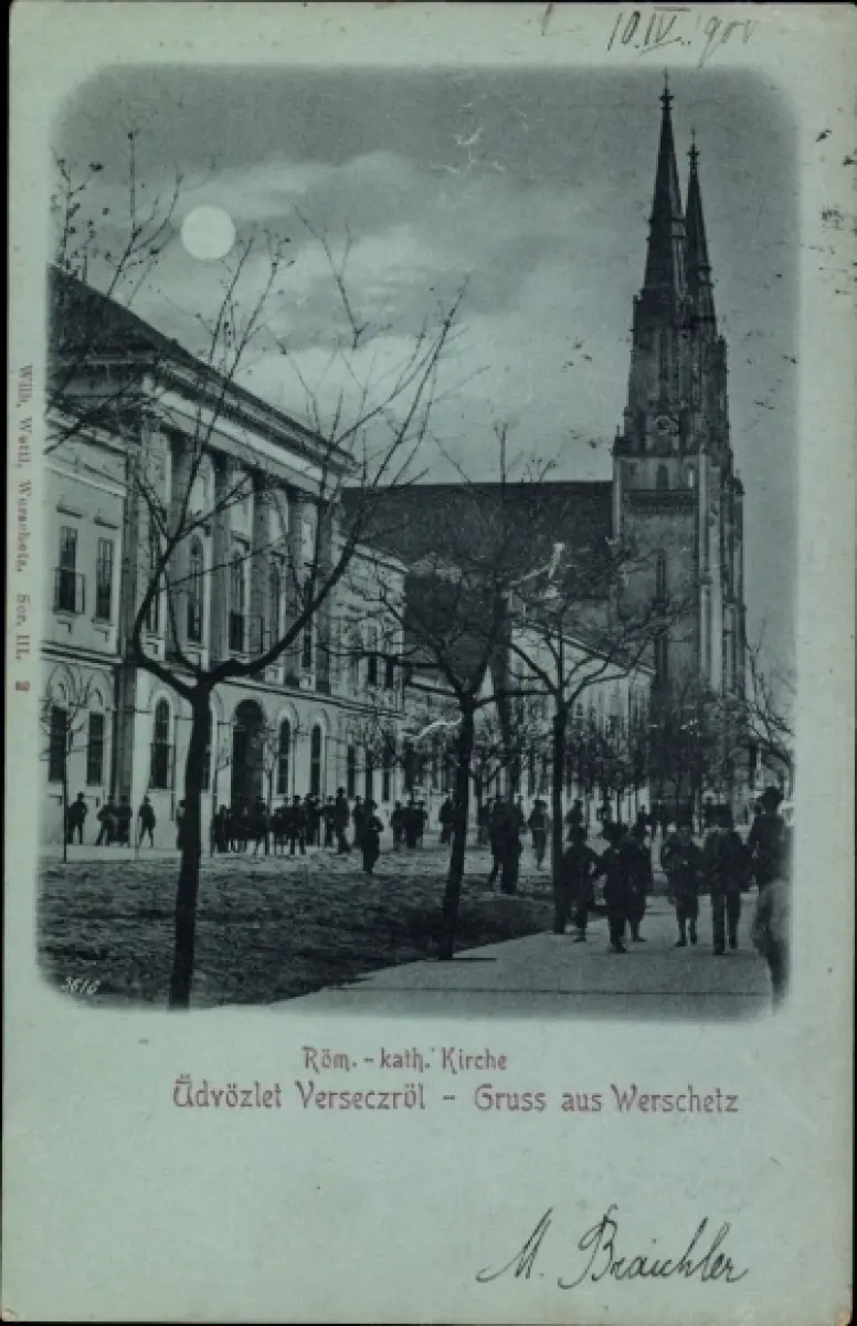 Mondschein Ak Versecz Vršac Werschetz Serbien, Römisch-katholische Kirche