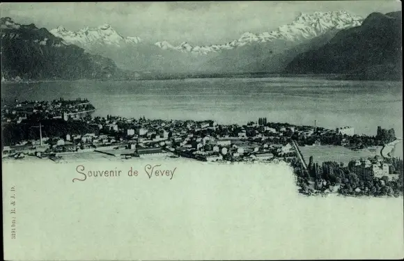 Mondschein Ak Vevey Kanton Waadt, Gesamtansicht
