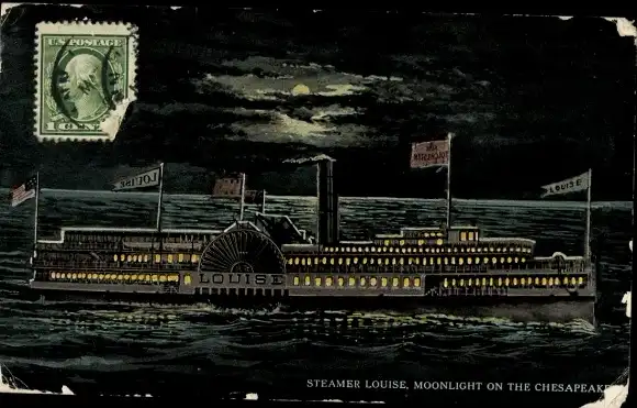 Mondschein Ak Virginia USA, Raddampfer Louise bei Mondenschein auf dem Chesapeake