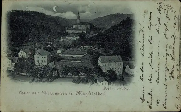 Mondschein Ak Weesenstein Dohna im Müglitztal, Schloß