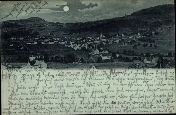 Mondschein Ak Weiler Simmerberg im Allgäu, Gesamtansicht
