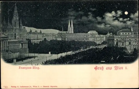 Mondschein Ak Wien 1 Innere Stadt, Franzensring