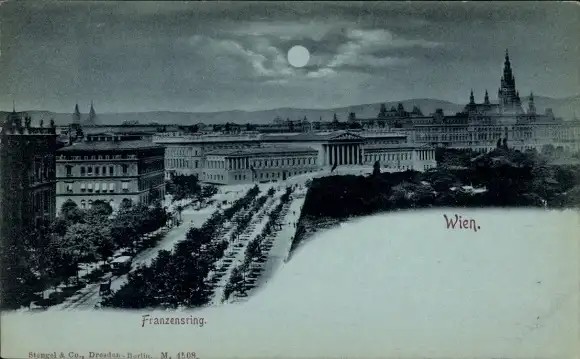 Mondschein Ak Wien 1 Innere Stadt, Franzensring