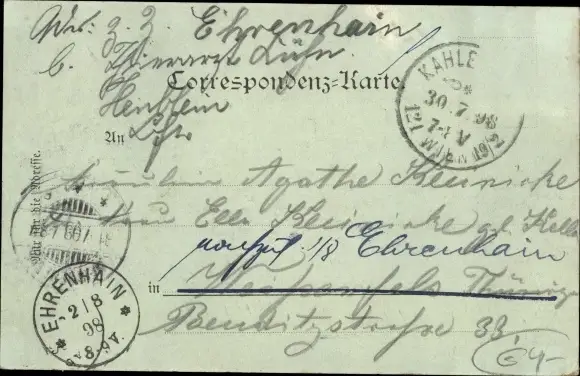 Zustand, siehe Scan, gelaufen, 1898 - ca 14 cm X 9 cm