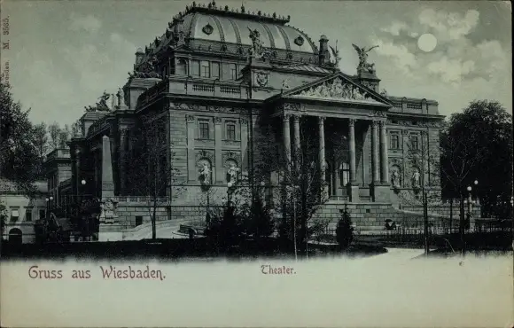 Mondschein Ak Wiesbaden in Hessen, Theater