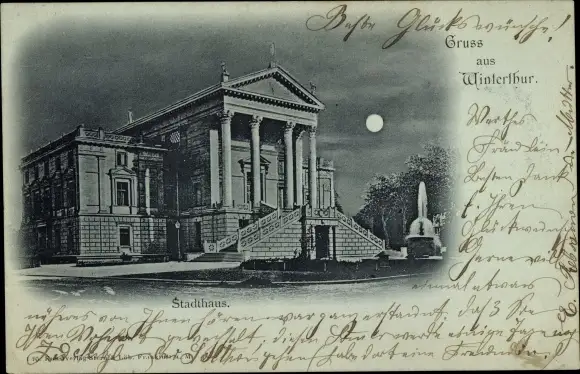 Mondschein Ak Winterthur Kt Zürich Schweiz, Stadthaus
