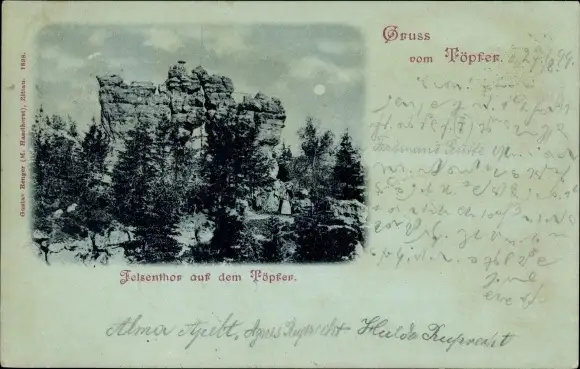 Mondschein Ak Zittau, Felsentor auf dem Töpfer