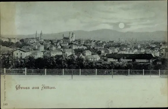 Mondschein Ak Zittau in Sachsen, Totalansicht der Ortschaft