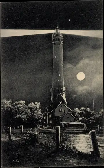 Mondschein Ak Świnoujście Swinemünde Pommern, Leuchtturm