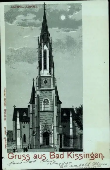 Mondschein Litho Bad Kissingen Unterfranken Bayern, Katholische Kirche