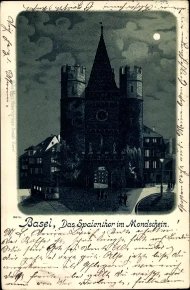 Mondschein Litho Bâle Basel Stadt Schweiz, Blick auf das Spalentor