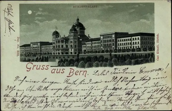 Mondschein Litho Bern Stadt Schweiz, Blick auf den Bundespalast