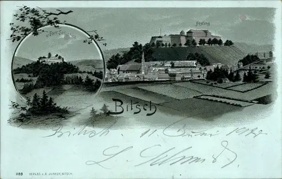 Mondschein Litho Bitche Bitsch Lothringen Moselle, Forst Sebastian, Festung