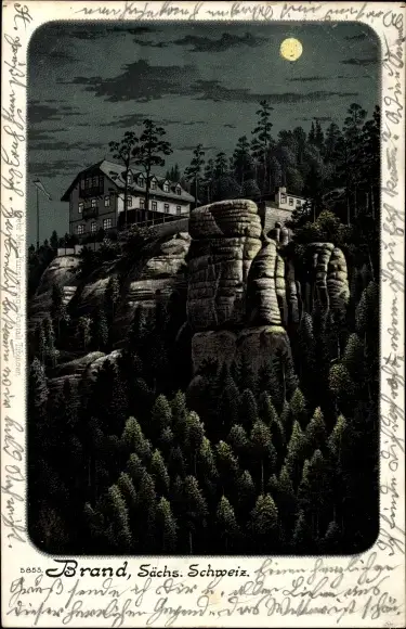 Mondschein Litho Brand Hohnstein Sächsische Schweiz, Nacht, Felsen