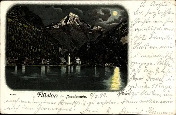 Mondschein Litho Flüelen Kanton Uri Schweiz, Seepartie