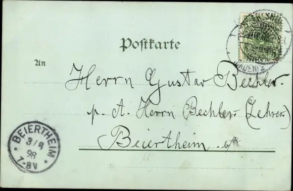 Zustand, siehe Scan, gelaufen, 1898 - ca 14 cm X 9 cm