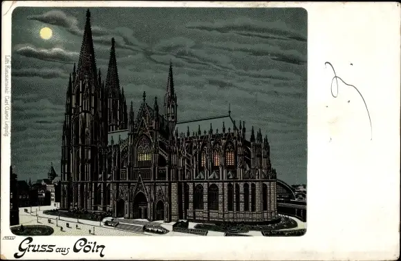 Mondschein Litho Köln am Rhein, Dom