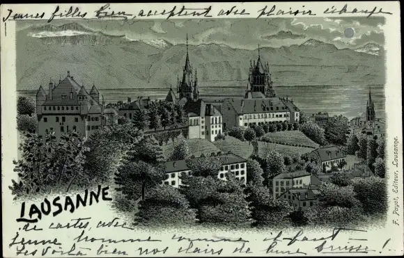 Mondschein Litho Lausanne Kanton Waadt Schweiz, Panorama
