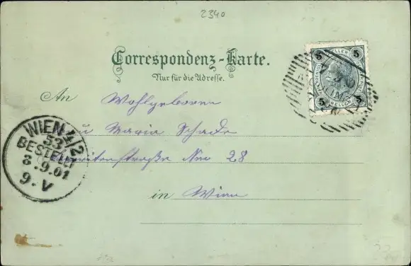 gelaufen 1901, leicht fleckig, sonst guter Zustand