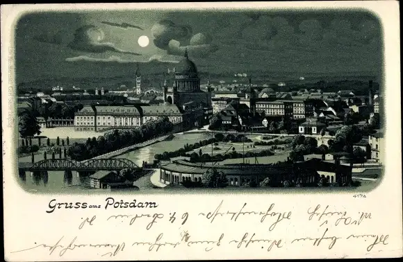 Mondschein Litho Potsdam in Brandenburg, Gesamtansicht der Stadt