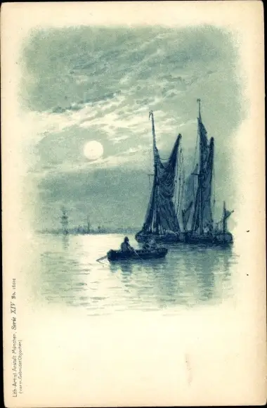 Mondschein Litho Ruderpartie, Segelboote