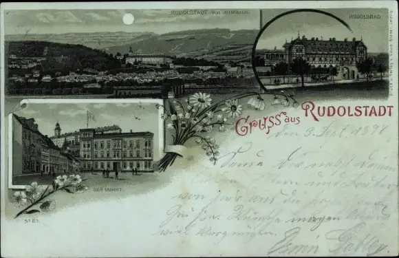Mondschein Litho Rudolstadt in Thüringen, Panorama, Rudolsbad, Markt