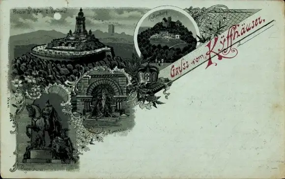 Mondschein Litho Steinthaleben Kyffhäuserland in Thüringen, Kyffhäuser, Kaiser Wilhelm Denkmal