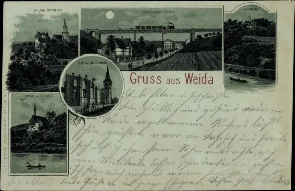 Mondschein Litho Weida in Thüringen, Schloss, Kirche, Viadukt