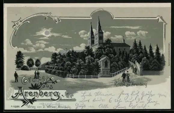 Mondschein-Lithographie Arenberg, Blick zur Kirche