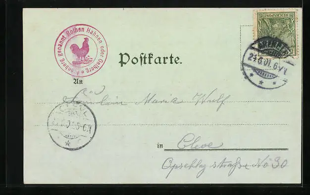 gelaufen 1901, Eckknick unten rechts, guter Zustand