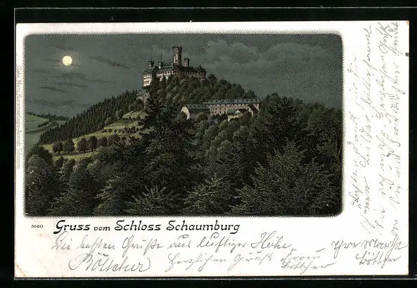 Mondschein-Lithographie Balduinstein, Schloss Schaumburg