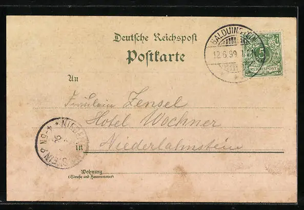 gelaufen 1899, Eckknick unten li., Bugspur li. Mitte, guter Zustand