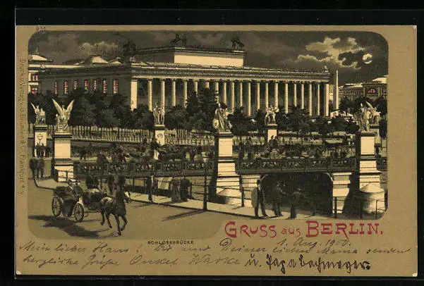 Mondschein-Lithographie Berlin, Schlossbrücke, Altes Museum