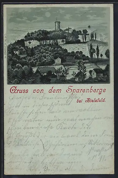 Mondschein-Lithographie Bielefeld, Blick auf den Sparenberg