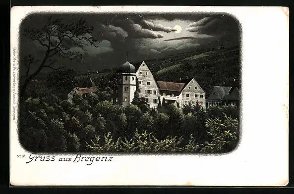 Mondschein-Lithographie Bregenz, Ortsansicht bei Nacht