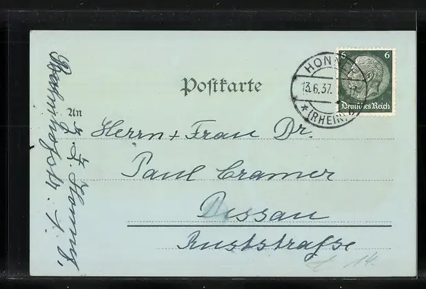 gelaufen 1937, Einriss rechts mittig, guter Zustand