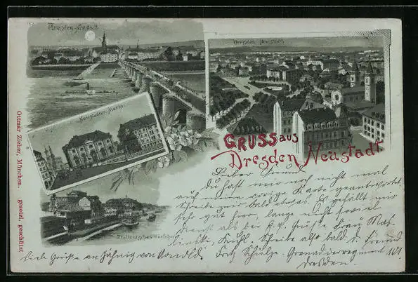 Mondschein-Lithographie Dresden-Neustadt, Neustädter Markt, Italienisches Dörfchen